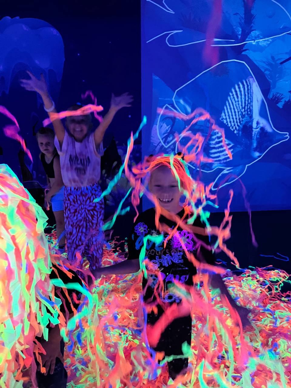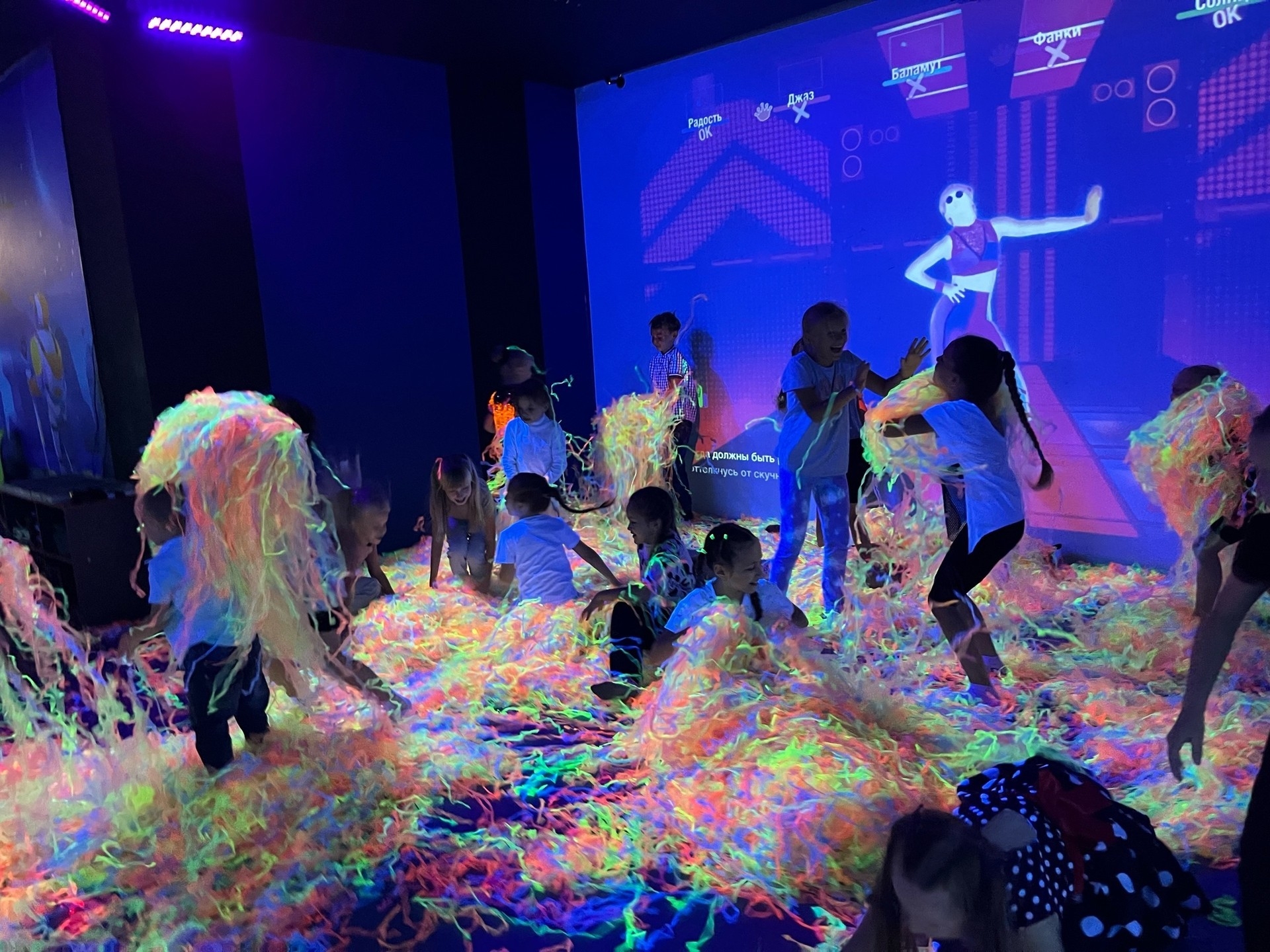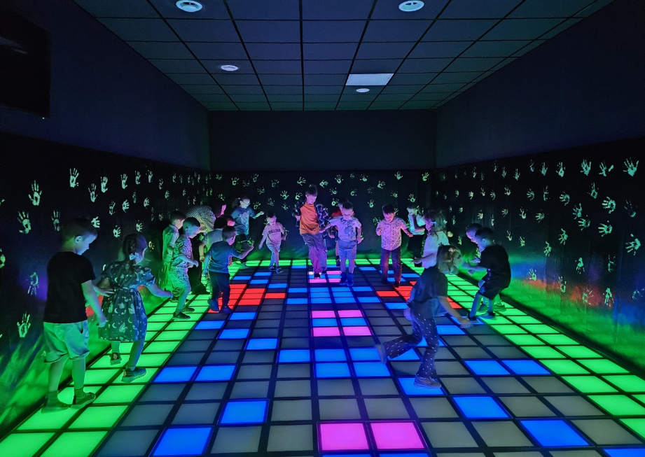 • Первую часть праздника дети проведут в интерактивной локации, где дети вместе с ведущим попробуют свои силы в лазерном тире, вооружившись подушками устроят настоящюю битву на стене "кидалки", выплеснут энергию на интерактивном полу, проявят творческие способности и оживят раскрашенных ими песонажей на "оживших рисунках", раскрасят большими карандашами подводный мир, космическую станцию или волшебный лес на аттракционе "волшебное рисование", построят настоящий вулкан в 3D песочнице. Далее ребят ждет Классная дискотека Juste Dance с неоновым шоу и другие интерактивные развлечения.