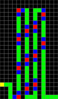 Зелёные пиксели — зоны безопасности. Здесь вы в полной защите от лавы и можете передохнуть.
