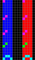 Синие пиксели — ваша цель! На них нужно быстро наступать, чтобы зарабатывать очки.