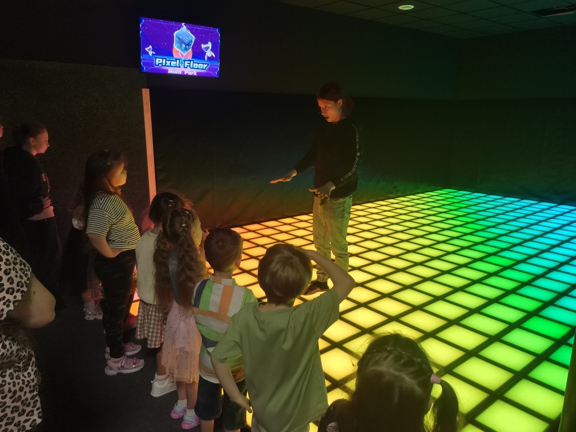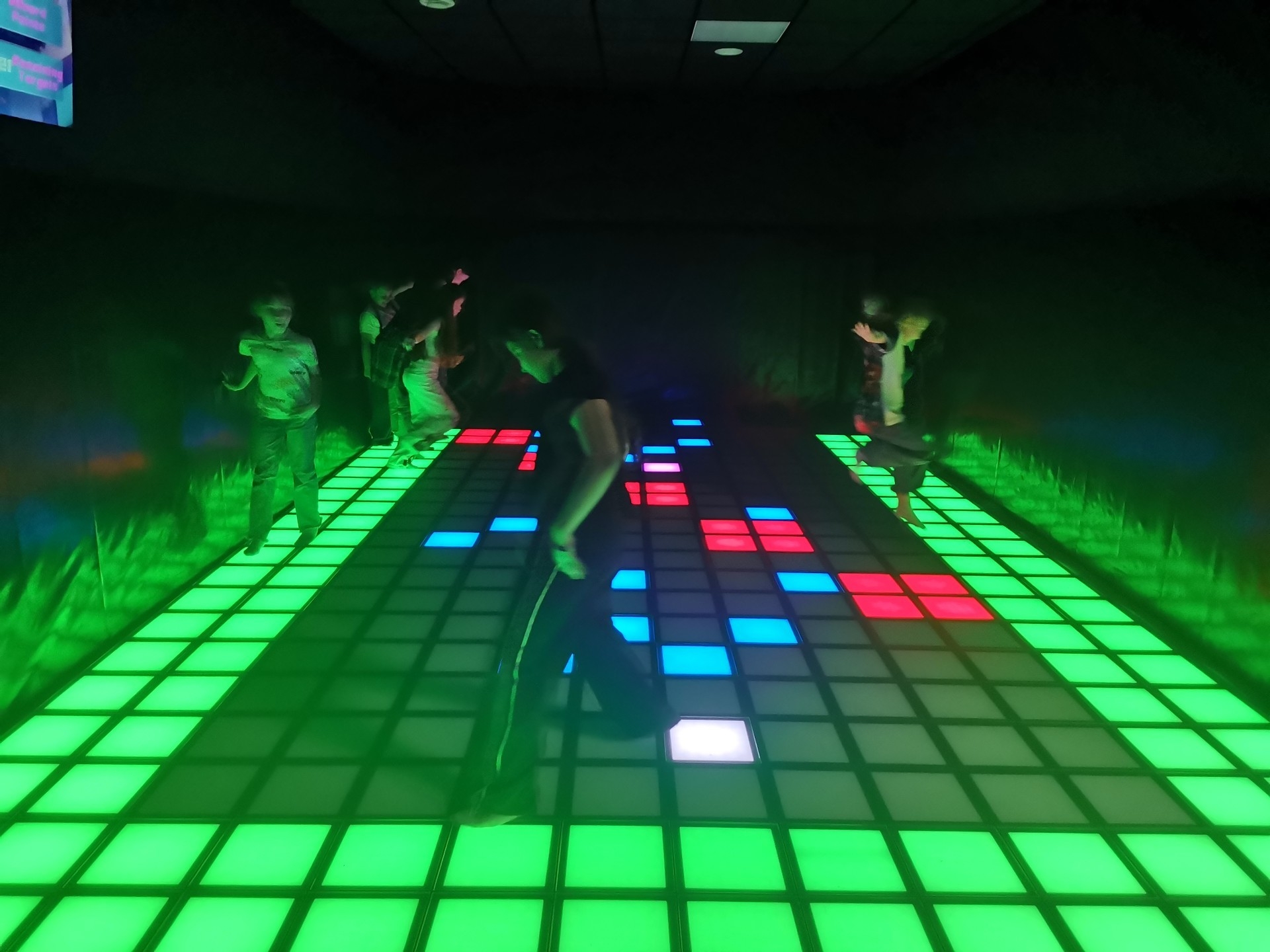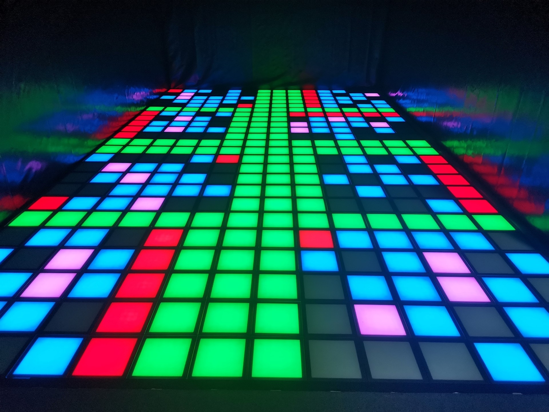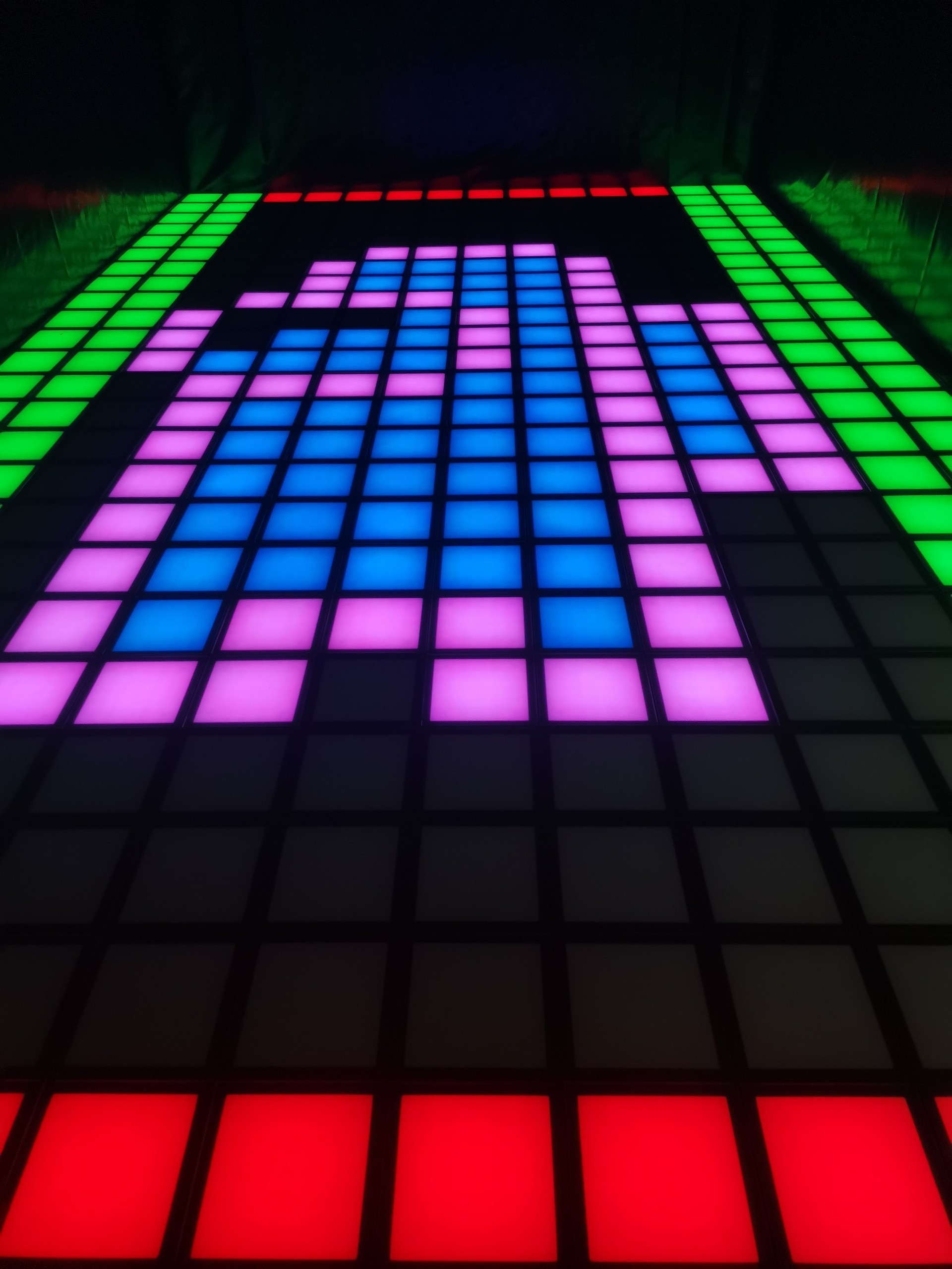 Отдельные светящиеся модули объединяются в единую игровую площадку, по которой можно свободно бегать и прыгать. Каждая панель (или «пиксель») способна менять цвет в соответствии с заданной логикой:
